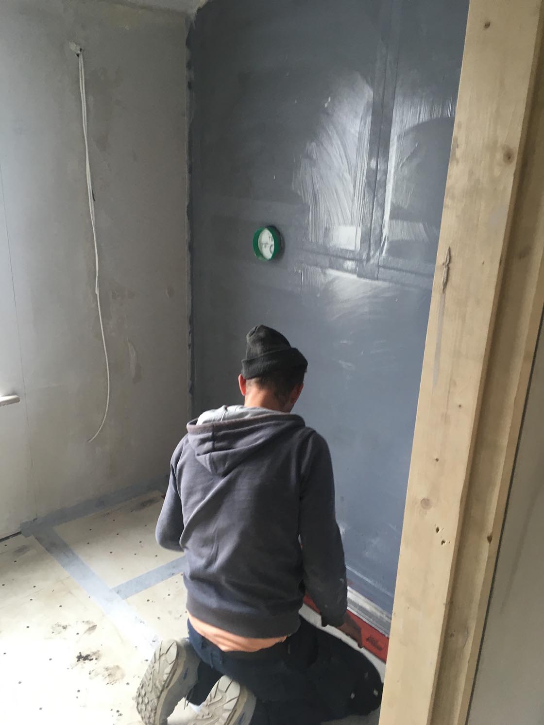 Wetroom tanking to wall of master bedroom ensuite at first floor level, pre tiling