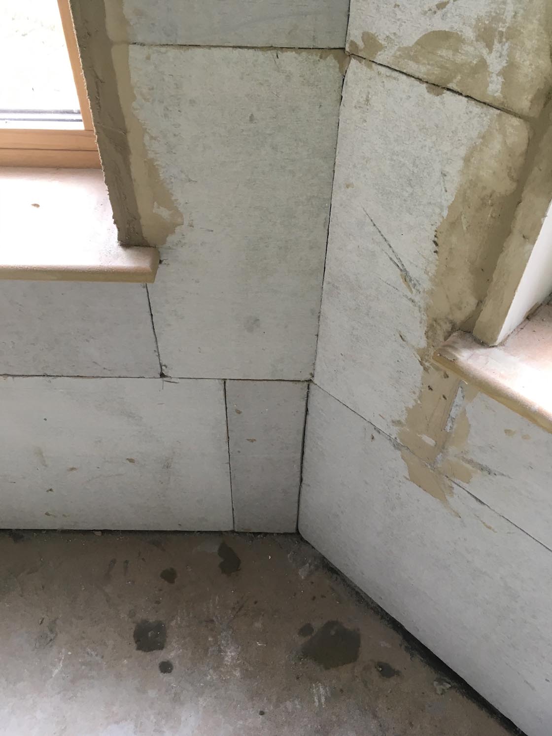 In the new parts of the house, there was no need to batten out the walls or attach a screw-fixed plasterboard. Instead, the build team used dot and dab plasterboard, while in the older part of the house, the liquid membrane was simply applied to the existing plasterwork.