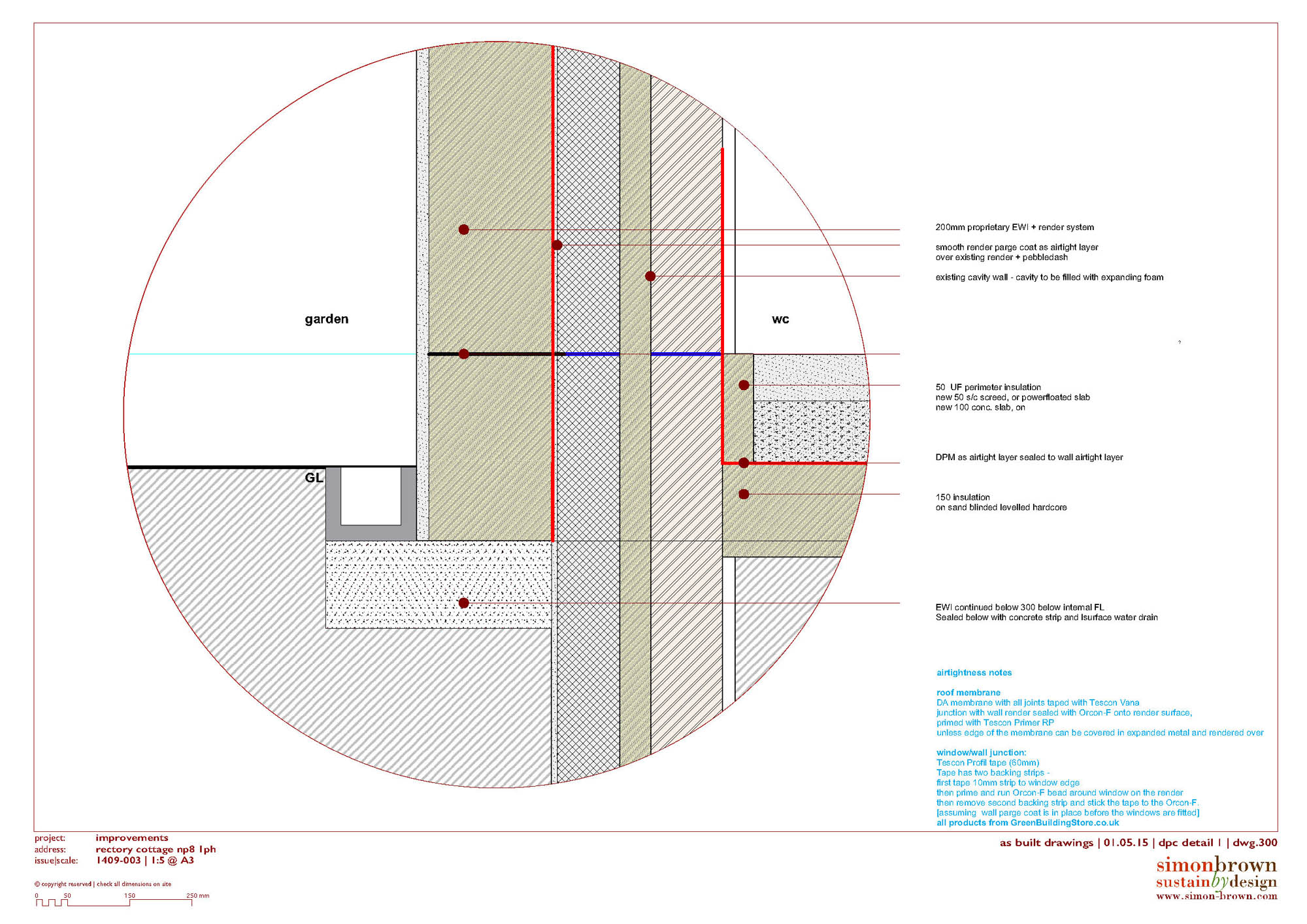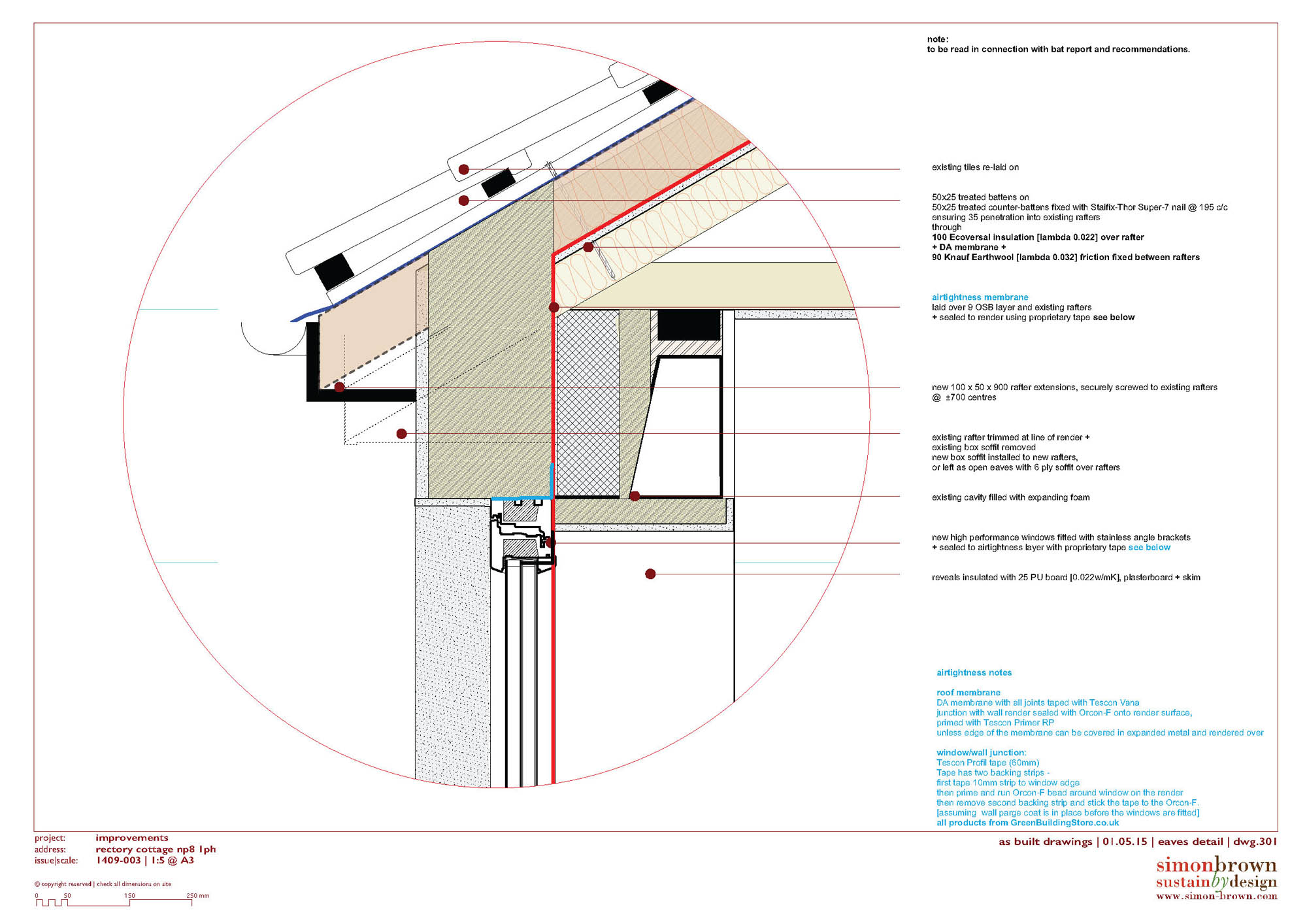 This involves ensuring the individual components of the building fabric and ventilation system are certified, rather than aiming for an overall space heating demand figure. This method worked well at Rectory Cottage because of the poor orientation of the existing house, and because it also gave the team some leeway to allow thermal bridging at the stone wall footings.