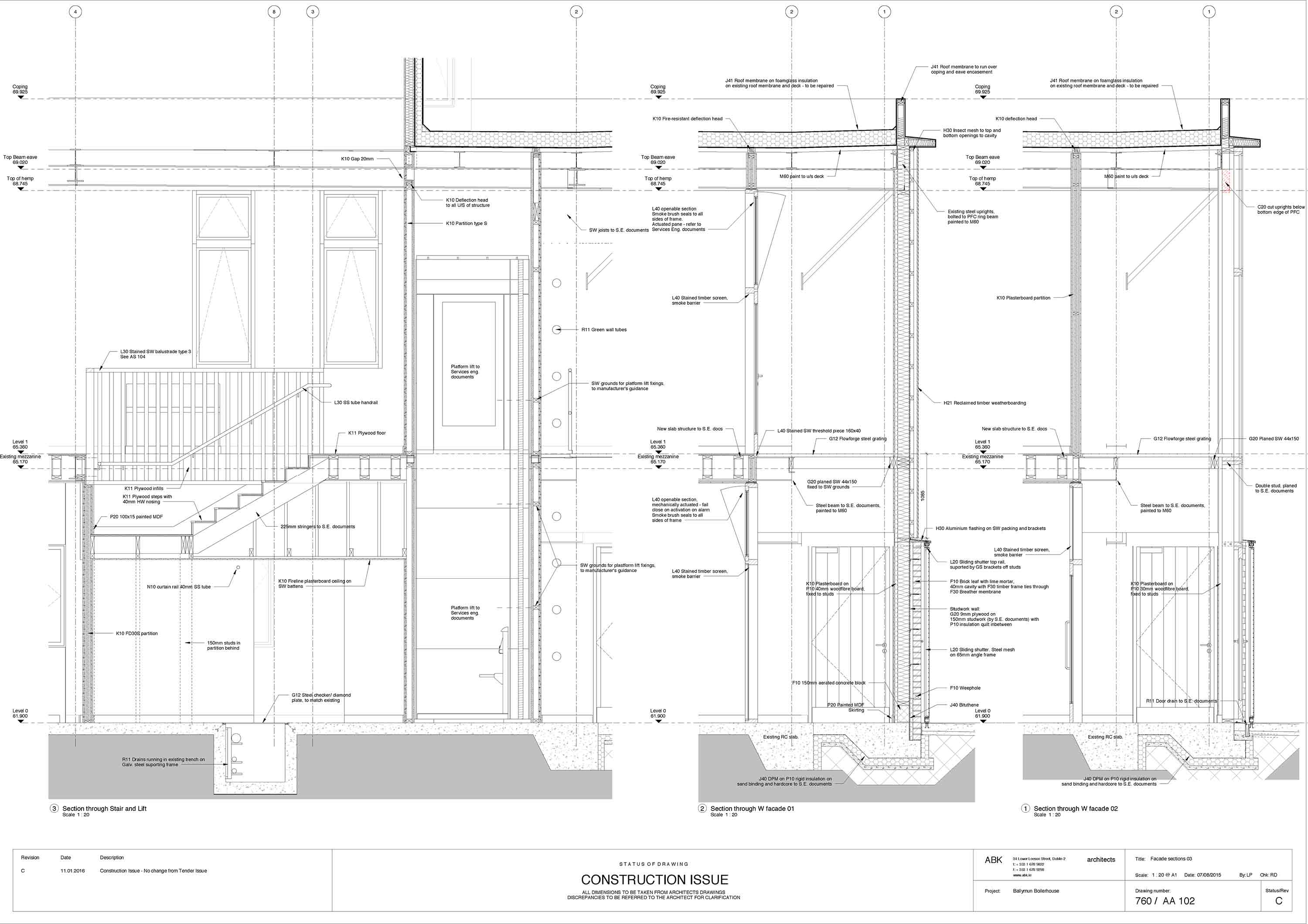 “Normally,” says Robert Davys, “keeping the heat in and the water out are two primary concerns in a building and you might use five materials to achieve this, whereas here, we had closer to fifty. With all of those different materials and different junctions, it was quite a head strain to make sure all the detailing was correct.”