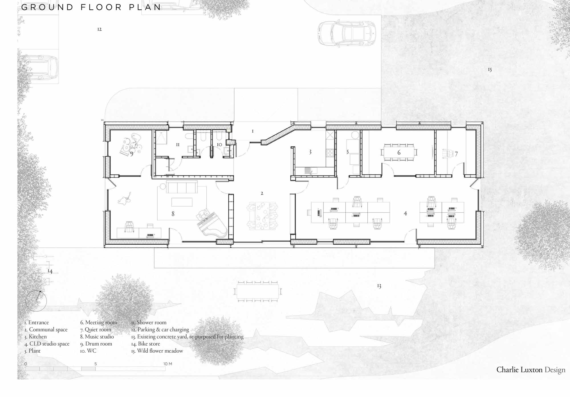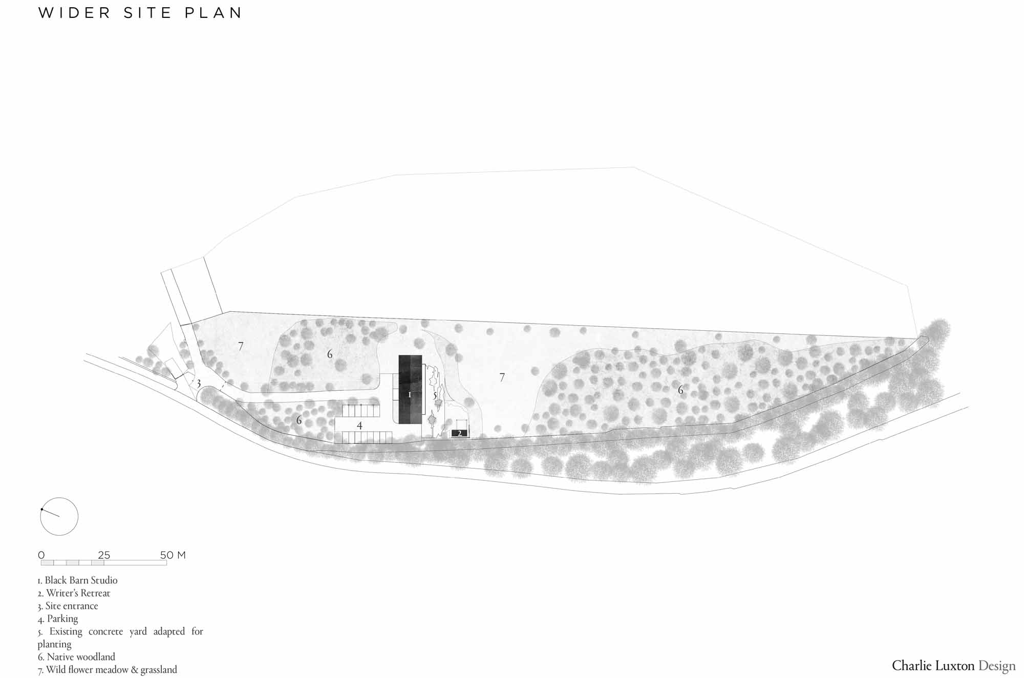 Charlie and his wife Kate, who is CLD’s studio manager, were finishing their own house next door when this three-and-a-halfacre plot came up for sale. It had been used to keep horses and had a steel-framed barn surrounded by heavily grazed paddock. The CLD team had been working in Charlie and Kate’s old thatch cottage down the road, but this site offered the perfect opportunity to create a purpose-built studio.