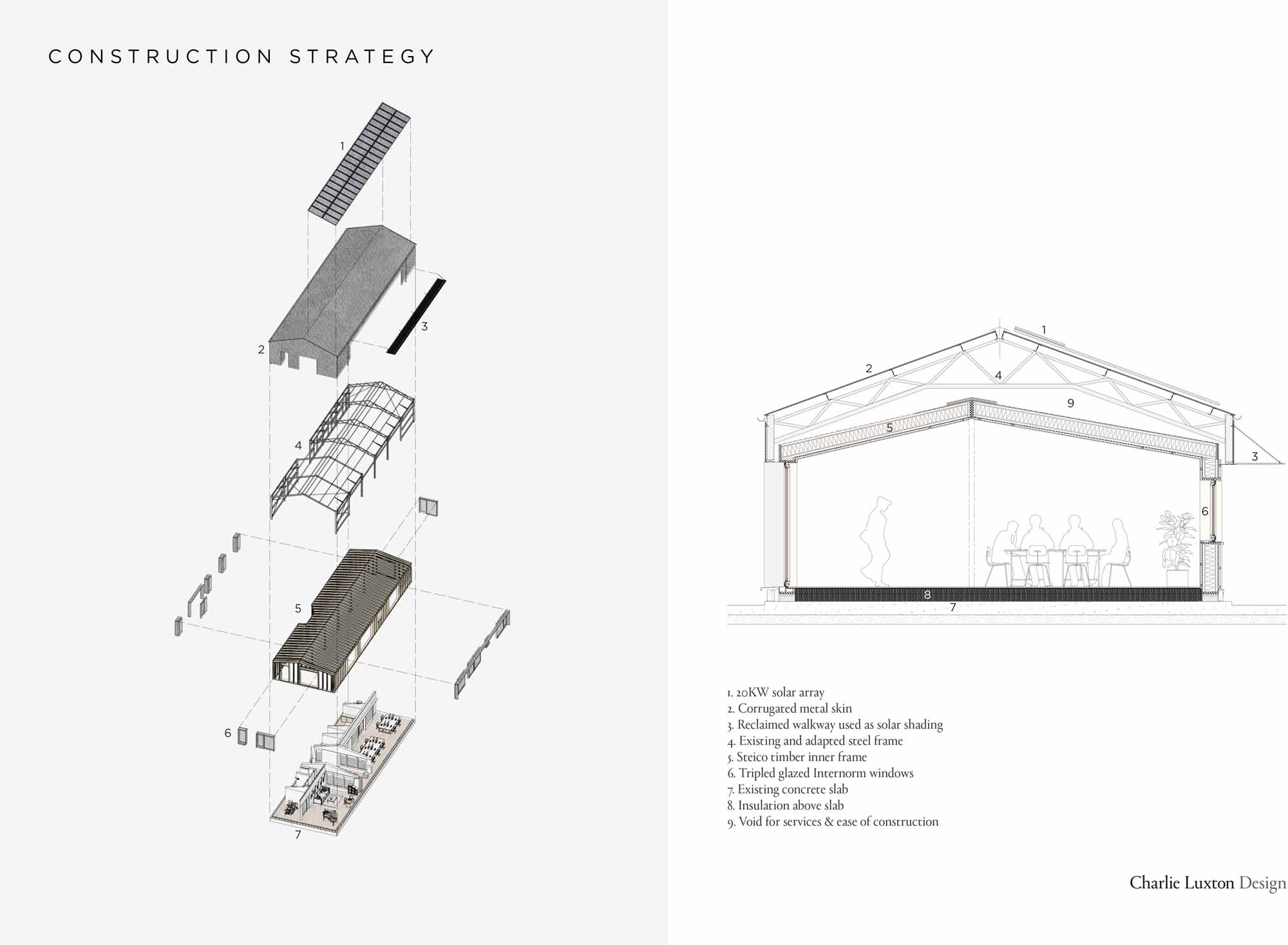Charlie says that thinking about how to reuse materials at scale was one of the big takeaways from the project. “How do you use the things you’ve got to make the buildings you need?” he asks. “And how do you do that at scale? How do you find the materials, log the materials, test the materials, certify the materials?” These are some of the next big environmental questions for the building sector to get to grips with.