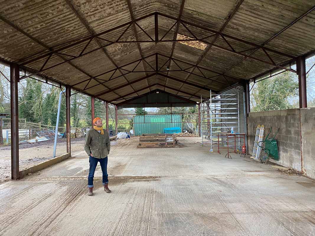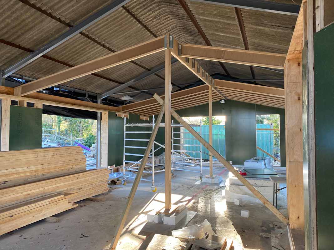 Charlie served as principal contractor and recruited as many local trades as he could. The team laid a thin layer of levelling screed and then set out to build a new timber-framed studio within the structure of the old barn.