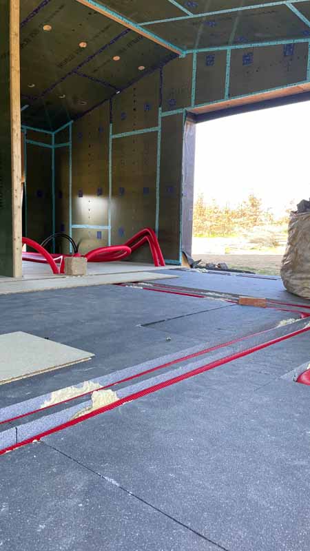 Caberfloor chipboard on 100 mm Platinum EPS, including channels cut for 75 mm semirigid Airflow ducting, with a further 150 mm EPS beneath