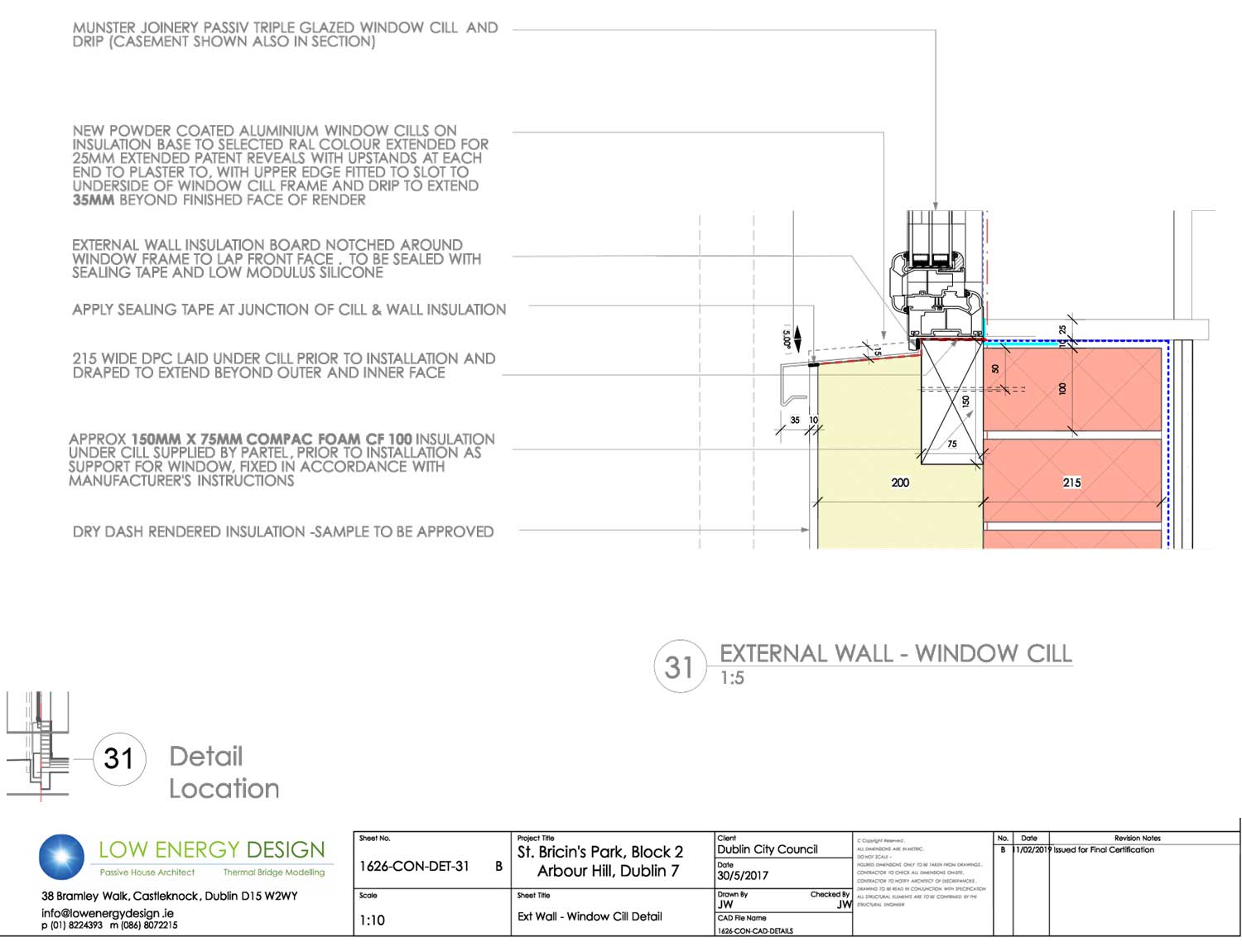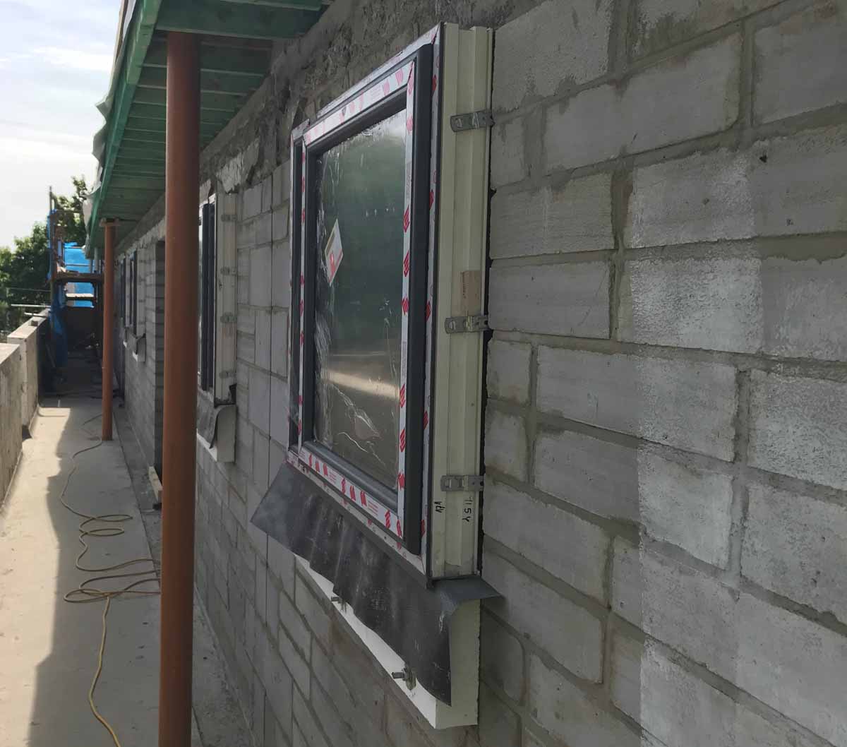 Compacfoam thermal breaks were installed as structural support under windows, with aluminium starter track for the external insulation layer
