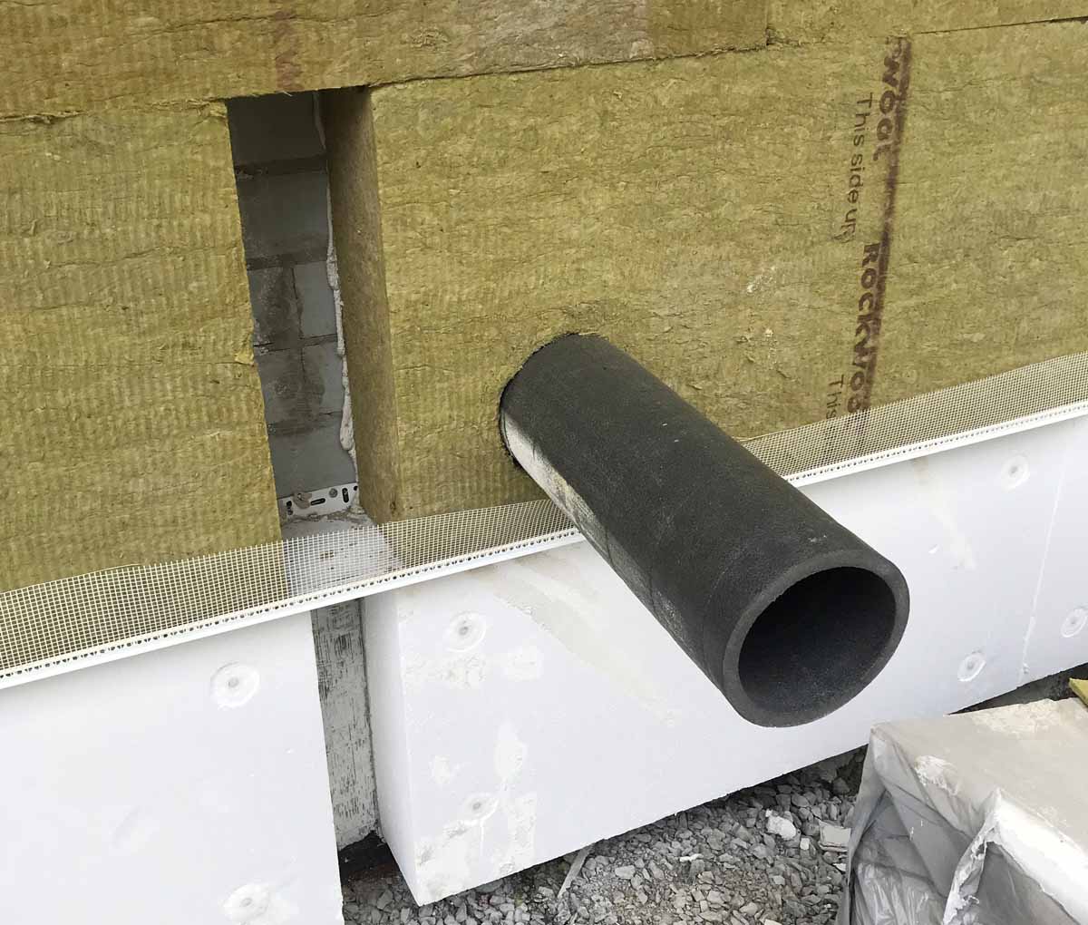 Ventilation ductwork coming through the external insulation layer