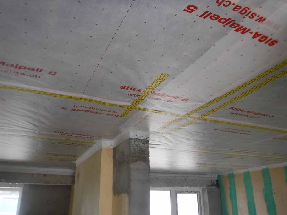Siga membrane and tapes to ceiling