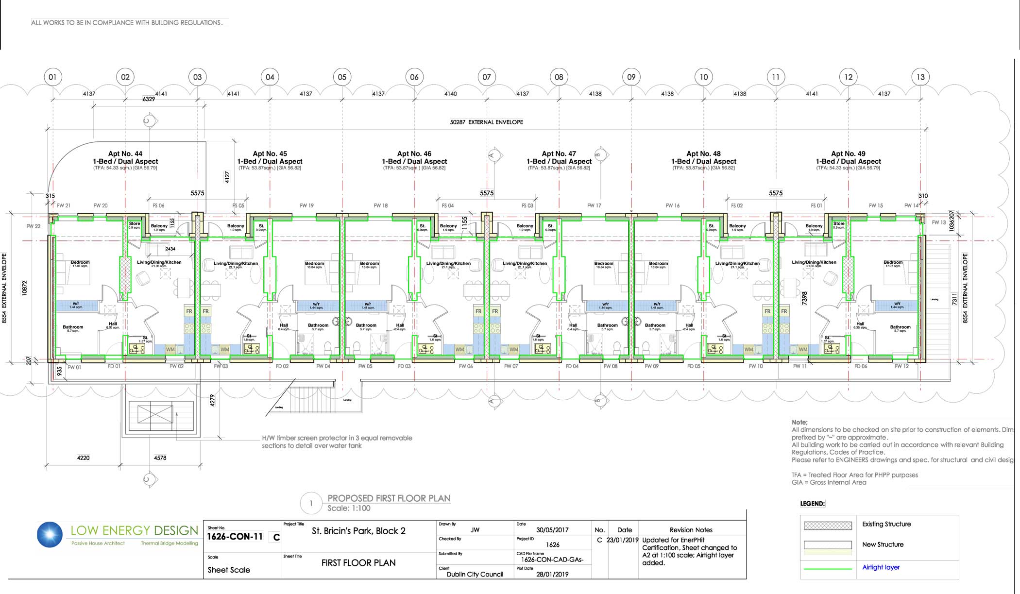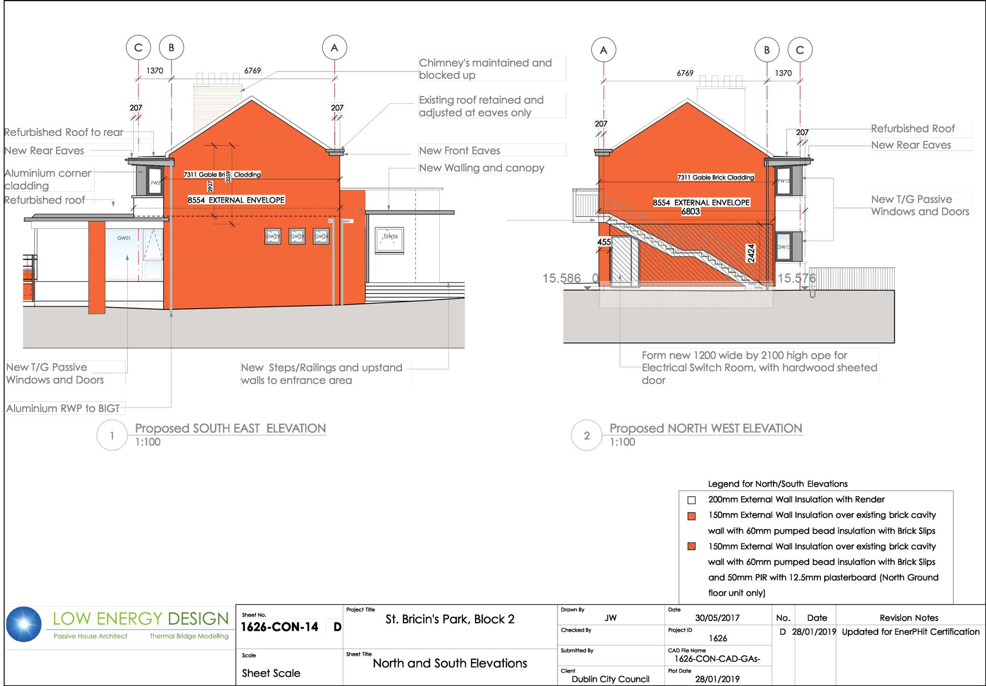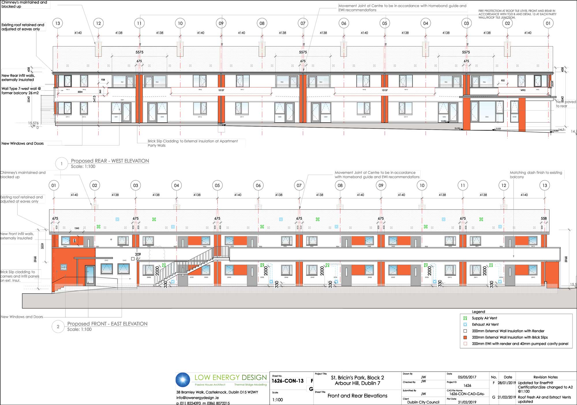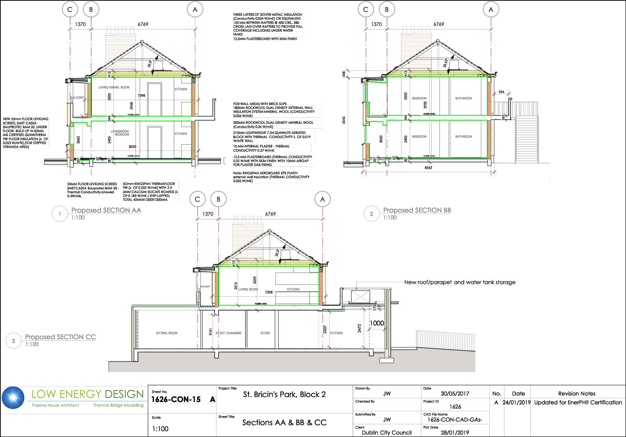 James Walsh of Low Energy Design was the passive house consultant on the St Bricin’s Park project. He explains that two of the three blocks that comprise the development had already been retrofitted when he came on board. In line with the 140+ amalgamations (from 270+ units) completed city-wide between 2014 and 2018, these apartments had been upgraded to achieve BERs of between B3 and A3.