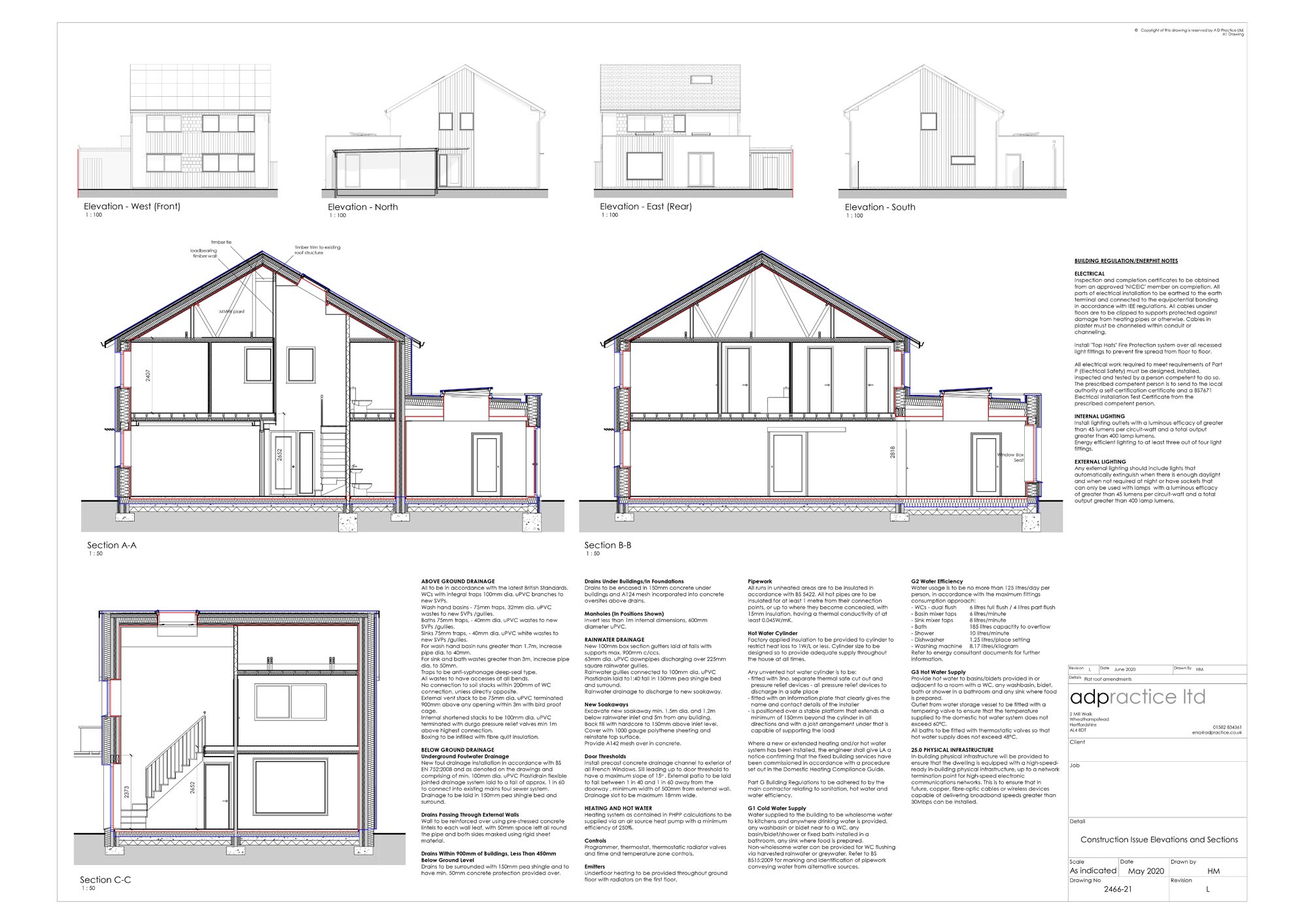 Electricity: 48 m2 GB-Sol Roof Integrated Solar photovoltaic array to entire front roof pitch with average annual output of 6.6 MWh, with 3.4 MWh exported to the grid. No storage, prioritised for ASHP, domestic hot water heating via immersion and electric car charging, excess electricity exported.