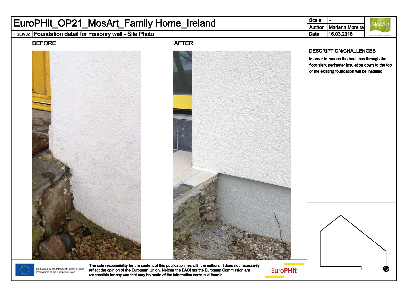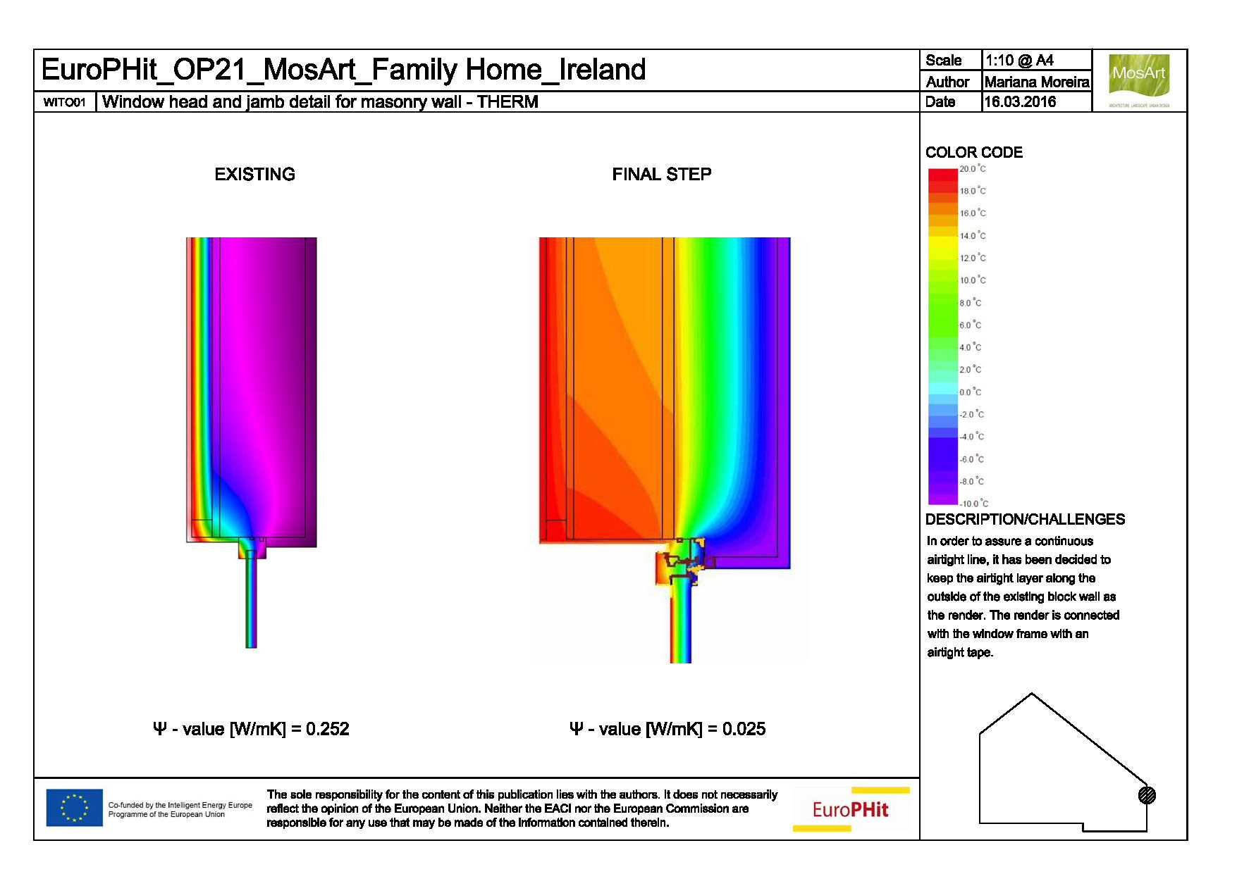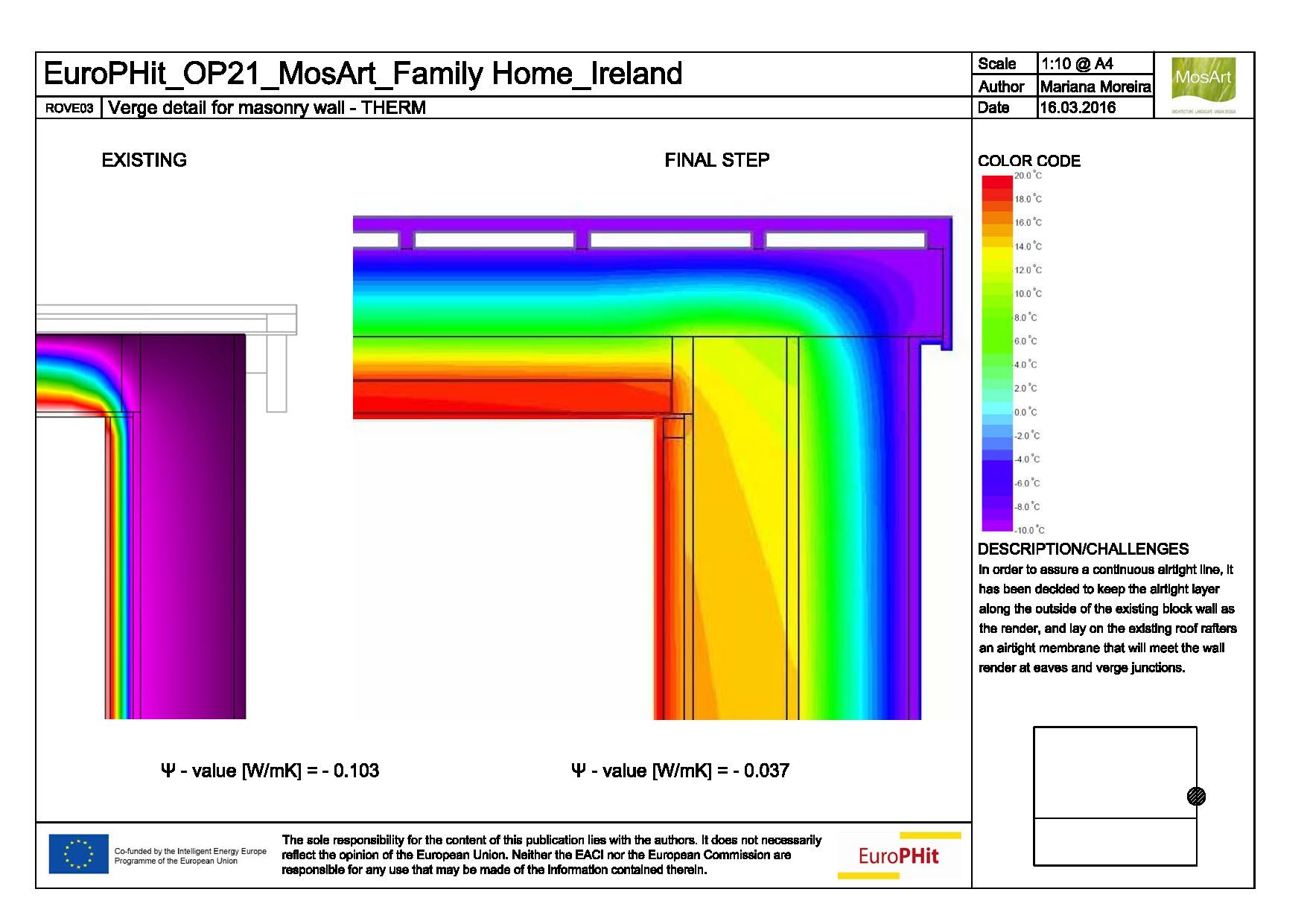 Before: 215mm rendered concrete block walls internally insulated with 50 mm fiberglass. U-value: 1.153 W/m2K
