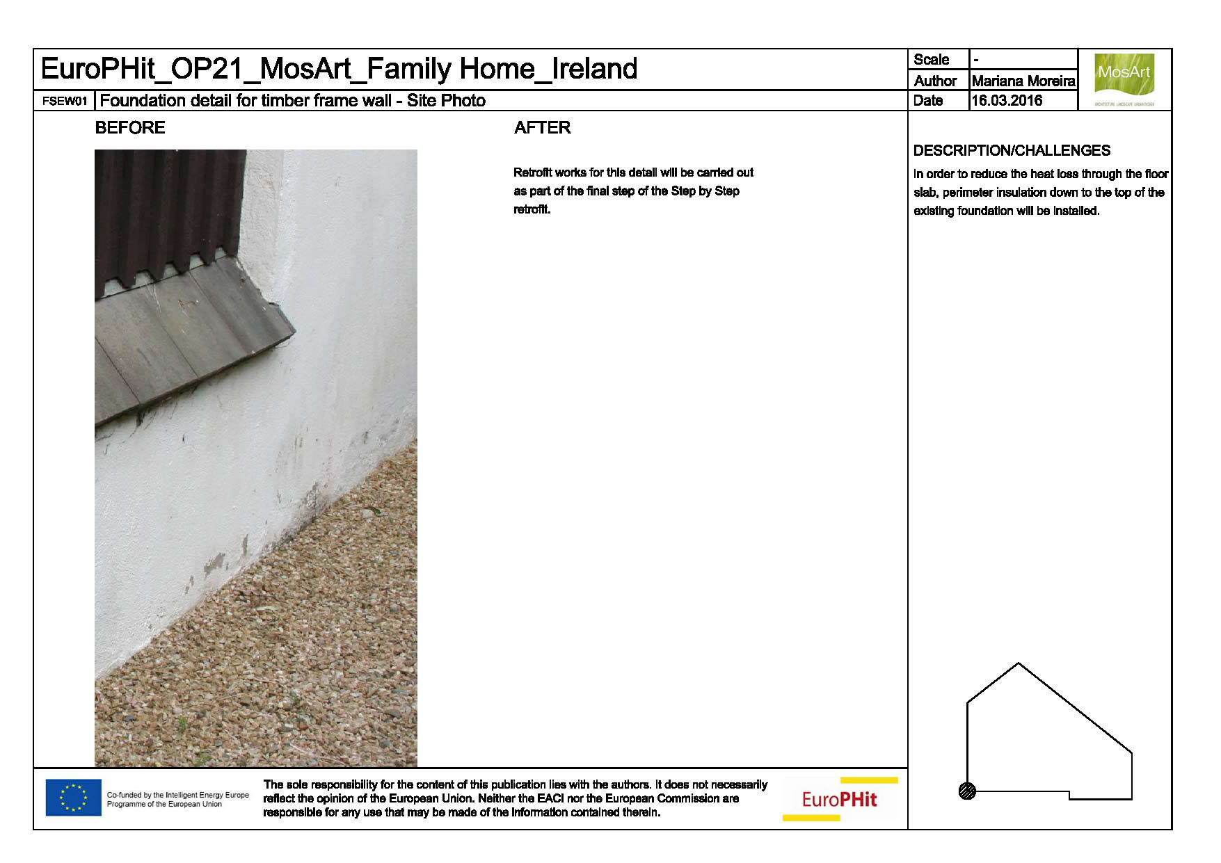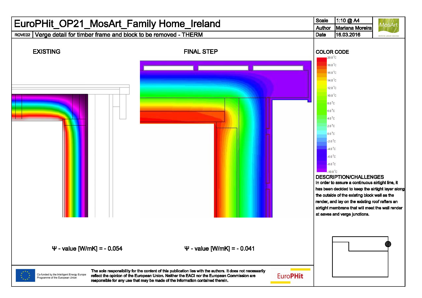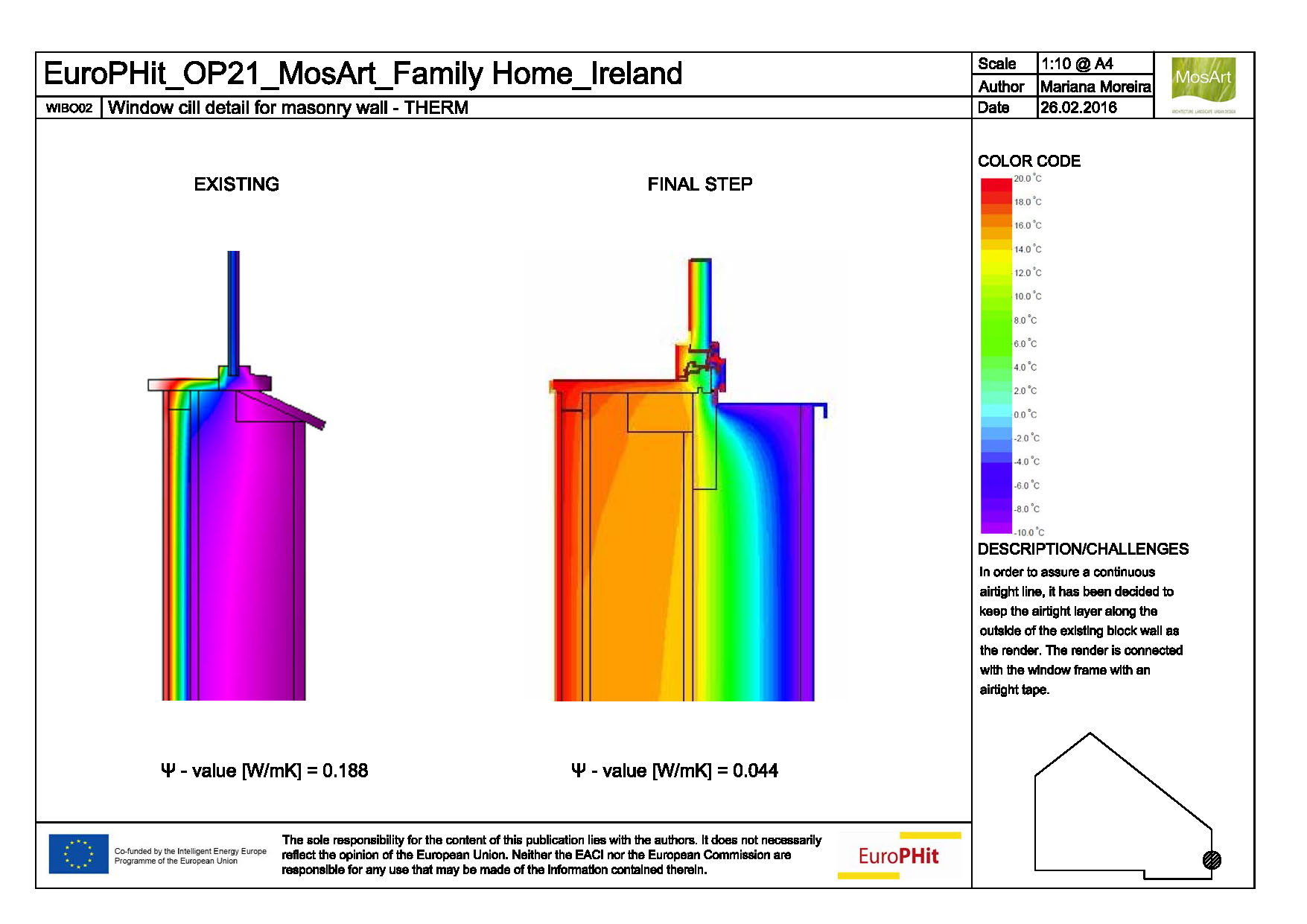 Before: 215mm rendered concrete block walls internally insulated with 50 mm fiberglass. U-value: 1.153 W/m2K